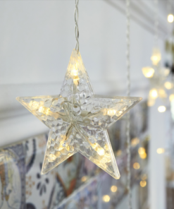 ACA LIGHTING CHRISTMAS X05251111 „12 GLITTER STAR CLIPS“, 25 LED WW SILVER COPPER WIRE STRING LIGHTS WITH BATTERIES (3xAA), IP20, 240+30cm, TRAN/NT LEAD CABLE