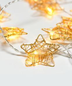 ACA LIGHTING CHRISTMAS X061011206A „METAL STARS“, 10 LED STRING LIGHTS WITH BATTERIES (3xAA), WARM WHITE, GOLD METAL, IP20, 135+30cm TRANSPARENT LEAD CABLE