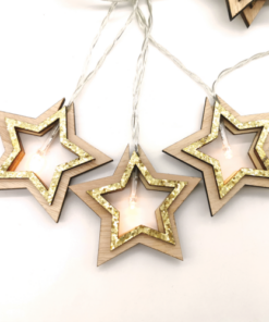ACA LIGHTING CHRISTMAS X061011206B „WOODEN GOLD GLITTER STARS“, 10 LED STRING LIGHTS BATTERIES (3xAA), WW, IP20, 135+30cm, TRAN/NT LEAD CABLE