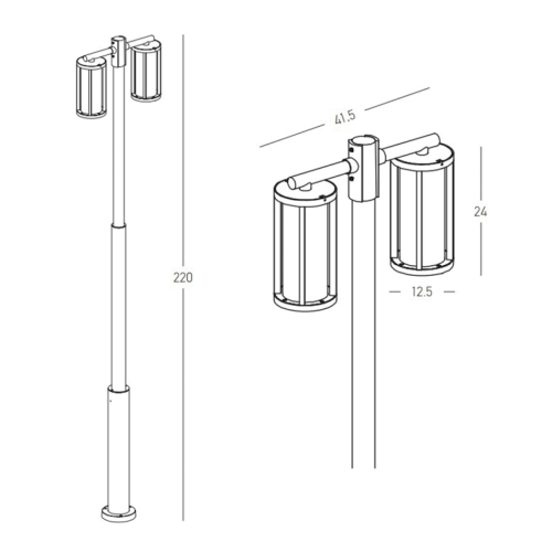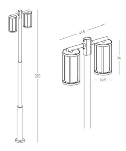 Размери: Дължина: 415мм, Ширина: 125мм, Височина: 2200мм, Диаметър на основата: 145мм
