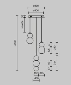 Мерки – Височина: 454-3280mm, Диаметър: 330mm, Диаметър на чашките: 100mm, 110mm, 130mm