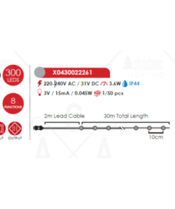 ACA LIGHTING CHRISTMAS X0430022261 SKIN LINE LAMP 300 LED STRING CW ADAPT. 8 FUNCTIONS IP44 LENGTH 30m 2m TRANSPARENT CABLE