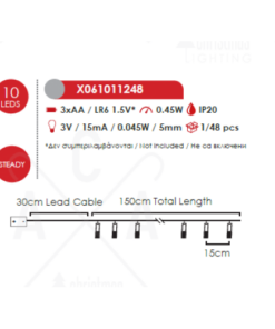 ACA LIGHTING CHRISTMAS X061011248 „WOODEN DEER RED-BLACK-GOLD-SILVER“, 10 LED STRING LIGHTS WITH BATTERIES (3xAA), WW, IP20, 135+30cm, TRANS/NT LEAD CABLE