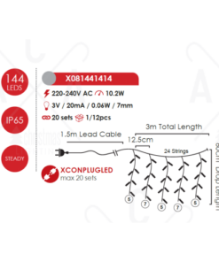 ACA LIGHTING CHRISTMAS X081441414 144 LED WHITE RUBBER CURTAIN LIGHT WW CONNECT(MAX 20) STEADY IP44, 300x60CM 1,5M LEAD CABLE