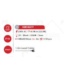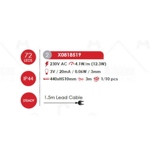 Атрактивна LED коледна декорация, изработена от метална фигура във формата на коледно дърво и светещ маркуч с 72 LED постоянно светещи чипа и мощност 12.3W в ЗЕЛЕН ЦВЯТ с дължина на захранващия кабел: 1500мм и висока степен на влагозащита: IP44. Стилно предложение за екстериорната коледна украса на вашия дом, вила, хотел и заведение.
