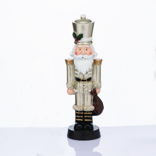 Атрактивна коледна декорация във формата на изработена от смола фигура на войник лешникотрошачка в цвят шампанско с коледен имел. Оригинално предложение за коледната украса във вашия дом, вила, хотел и заведение.