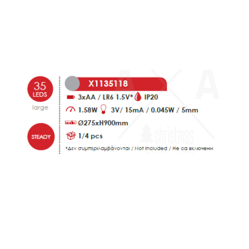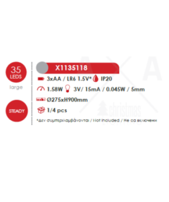 Мощност: 1,58W, 3000K LED, 3 батерии 1,5V (AA) (не са вкл.)