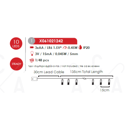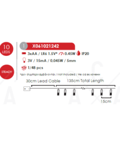 ACA LIGHTING CHRISTMAS X061021242 „PLASTIC BIG&MEDIUM STARS“, 10 LED STRING LIGHTS BATTERIES (3xAA), CW,IP20, 135+30cm, TRAN/NT LEAD CABLE