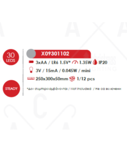ACA LIGHTING CHRISTMAS X09301102 „REINDEER TABLE LIGHTS“ 30 MINI LED WW SILVER COPPER LIGHTS WITH BATTERIES (3AA) IP20 25x5x30CM