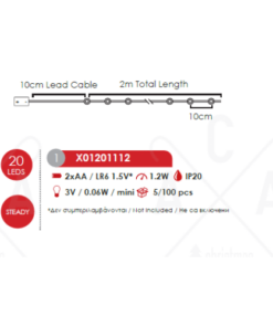 ACA LIGHTING CHRISTMAS X01201112 „STAR“ MOTIF 20 LED STRING LIGHTS WARM WHITE SILVER COPPER WIRE & BATTER.2xAA IP20 2m+10cm 1.2W