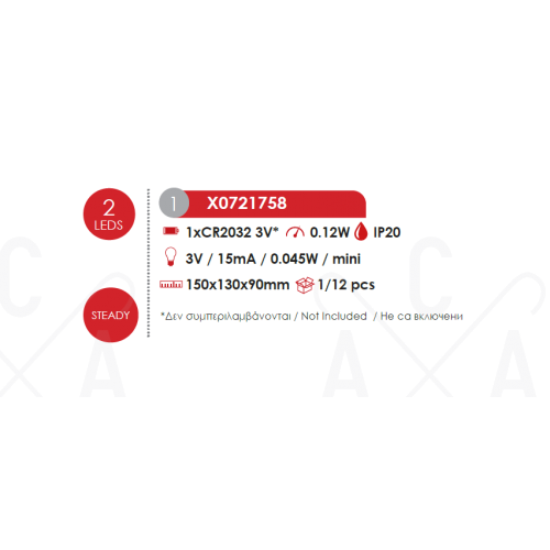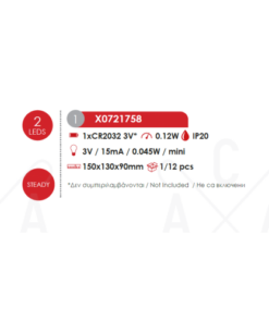 Мощност: 0,12W, 3000К LED, 1 батерия CR2032 3V (не е вкл.)