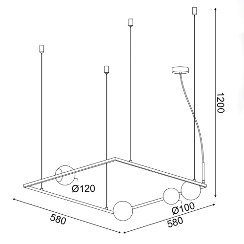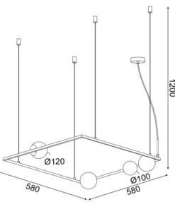Модерен пендел с елегантен дизайн от серията Quadro, изработен от черен мат цвят квадратна метална основа и рамка с четири бял опал сферични стъклени разсейвателя на цокъл G9. Пендел, перфектен за осветление във вашиявсекидневна, кухня, спалня, ресторант и хотел.