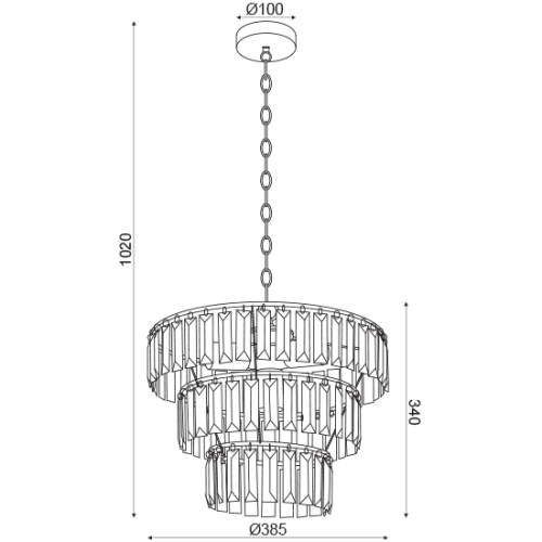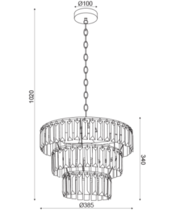 Модерен пендел, изработен от черна метална основа с кръгла шапка на три нива с декоративни акрилни висулки. Пендел, перфектен за осветление във вашиявсекидневна, кухня, спалня, ресторант и хотел.