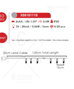 Мощност: 0,6W, 3000K, 2 батерии 1,5V (AA) (не са вкл.)