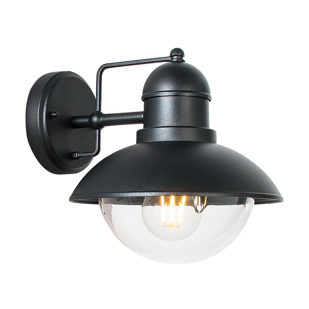 Фасаден аплик LUXERA 39036 HECTOR 1xE27/60W, IP44, MATT BLACK/CLEAR