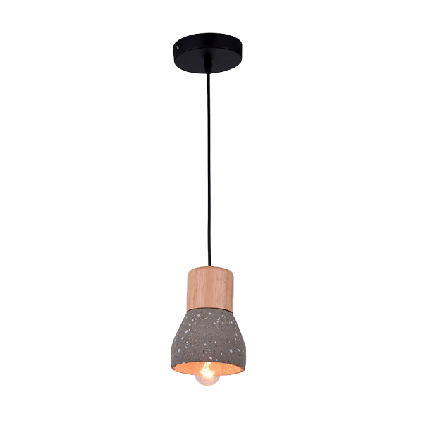 Дизайнерски пендел Majestic с корпус в сив, изработен от метал и дърво и бетон.