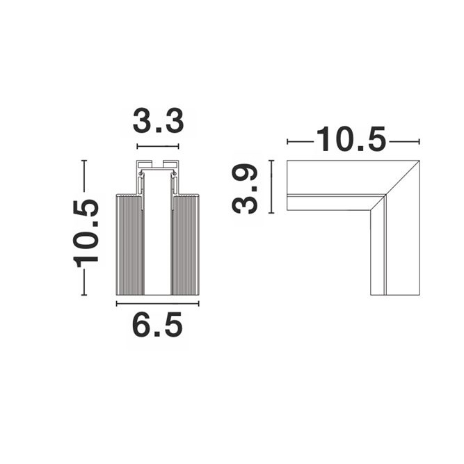 Размери: L: 10.5 W1: 2.3 W2: 6.5 H: 3.9 cm Cut Out: 2.6 cm