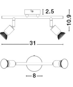 GU10 2×50 W, IP20 Bulb Excluded L: 31 W:8 H: 10.9 cm Марка: NOVA LUCE Фамилия: Осветителни тела BASE Широчина: 31 см. Височина: 10.9 см. Гаранция: 24 месеца