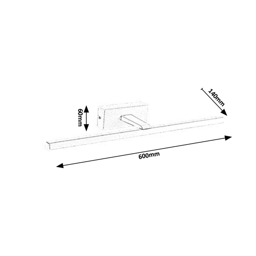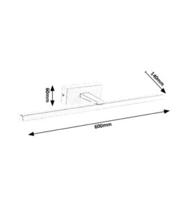 Размери: Височина: 60мм, Дължина: 600мм, Разстояние от стената: 140мм